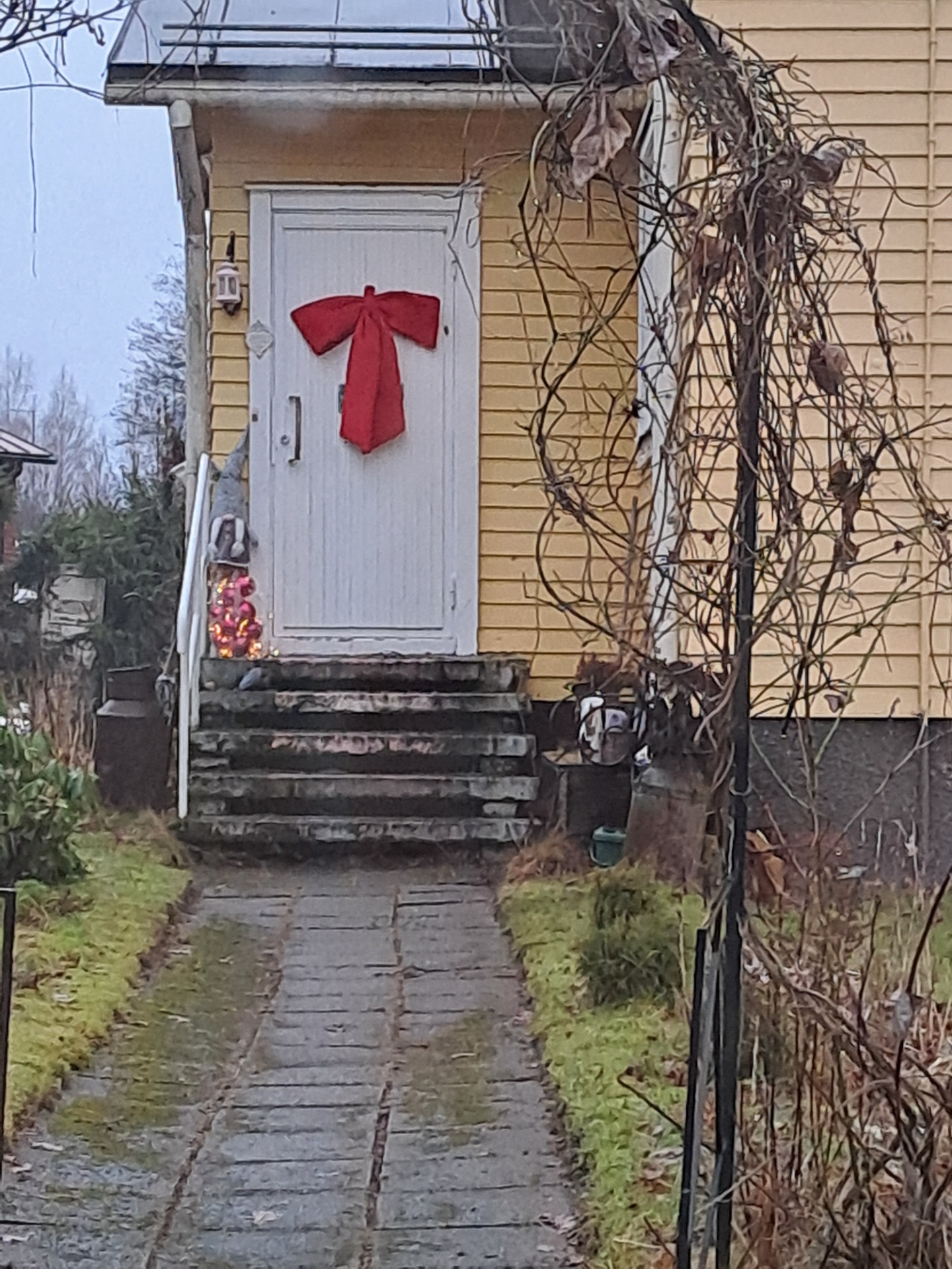 Jouluttaminenkin on alkanut pikkuhiljaa, ihmeen myöhässä kylläkin 🤔 Tänä vuonna vaihtui jo pitkälle marraskuu. Innostuin kun satoi pieni lumiharso maahan, vaihdoin keittiöön talviverhot ja laittelin kausivaloja. Kärkkäiseltä löytyi vaikka mitä ihanaa valojen lisäksi 😍😍 Jättirusetti ulko-oveen, mottoni mukaisesti mieluimmin överit kuin vajarit 😂 se meinaan on IIISOO !! Täytyykin ottaa siitä kuvaa tänne. Myös viime jouluksi ostetulle pukille löytyi nyt oiva paikka tikapuilta 👍 Ja tietenkin puutarhan syövereihin johtavaan salaiseen oveen vaihtui koristeeksi ikivanhat joulunkellot jotka eivät oikein ole paikkaansa löytäneet aiemmin. Tulisi nyt vaan lumi maahan niin näyttäisi toisenlaiselta ☃️